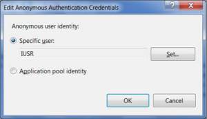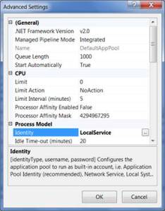 5. The identity selected in the resulting dialog box is used by IIS for impersonating (see below):